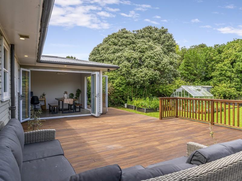 Practicality is covered with a single garage, extra off-street parking, and a smartly designed laundry complete with a second toilet. Year-round comfort comes courtesy of a discreet ceiling heat pump, and green thumbs will love the greenhouse, ideal for homegrown produce or your favourite blooms.