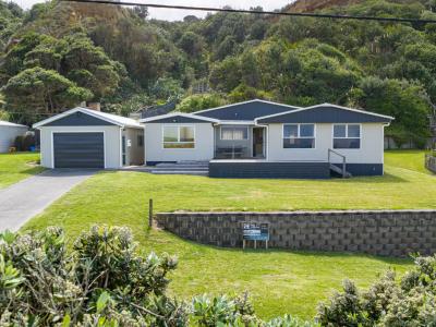 Positioned at the end of a right of way on a large 4250m2 section this beach bach offers uninterrupted sea views from every room and features spacious open plan living, two small double bedrooms, shower and vanity, second lounge with internal access to the single garage plus a sheltered deck area for all your entertaining. A spiral staircase in the lounge takes you down to the master bedroom with an ensuite and deck overlooking the beach. There is also a tired self contained unit with plenty of potential and its own access on the ground level and loads of room to park or pitch the tent.