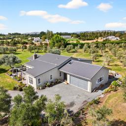 Outdoors, the property is a true lifestyle haven. Established olive trees and Pinot Noir vines create a beautiful, productive setting. An enviable selection of fruit trees – including lime, mandarin, orange, crab apple, redcurrant, feijoa and plum – dot the grounds, while a stone-lined creek with bridge adds a magical touch. Behind the home, carefully planned “chef's gardens” include raised vegetable beds and a shade house – perfect for those who love to grow their own produce. A bore water supply is a huge benefit for a property of this size in the Wairarapa climate.