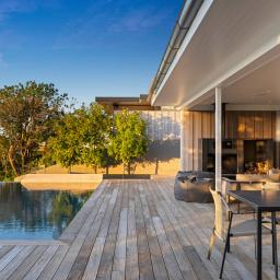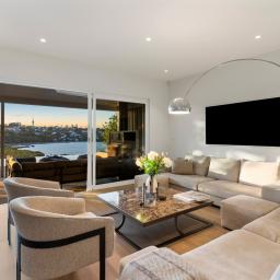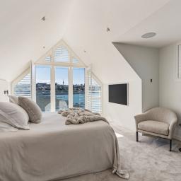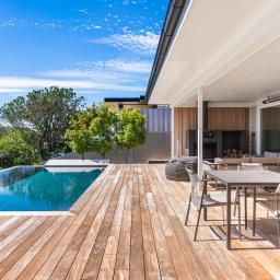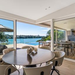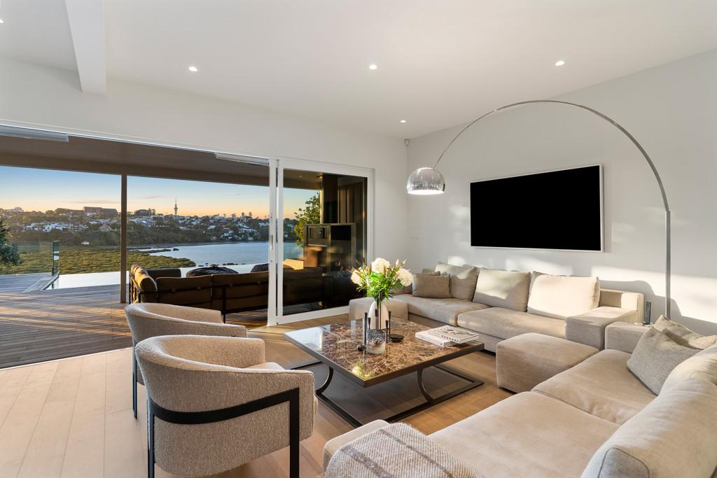 Privacy is a defining feature. Elevated above the bay and carefully oriented, the home feels quietly removed from the outside world. Outdoor living unfolds across expansive decking, an infinity pool and an outdoor fireplace, creating a private sanctuary where water, sky and city form a constantly changing backdrop.