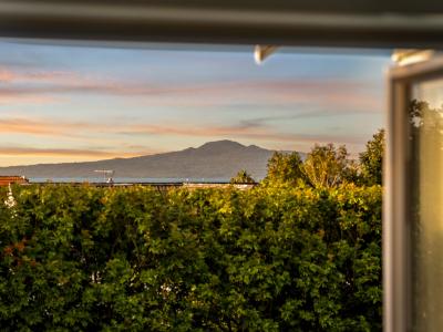 The home sits on a rare quarter-acre corner site, offering a park-like setting just 15 minutes from the city. Mature pohutakawa, liquid amber, karaka and magnolia trees are floodlit at night, while a cherry blossom marks the boundary. Birdlife is extraordinary. Morepork owls, wood pigeons and tui are heard at dawn and dusk, lending the feeling of waking in the country rather than the city. Despite its proximity to town, the property is remarkably tranquil and private.