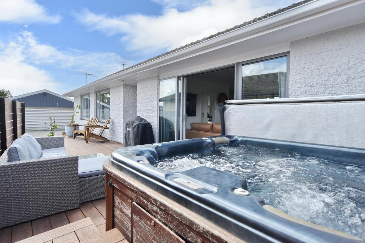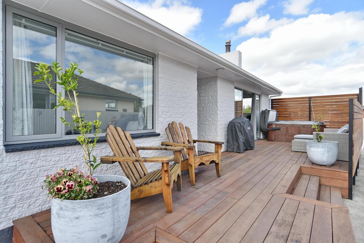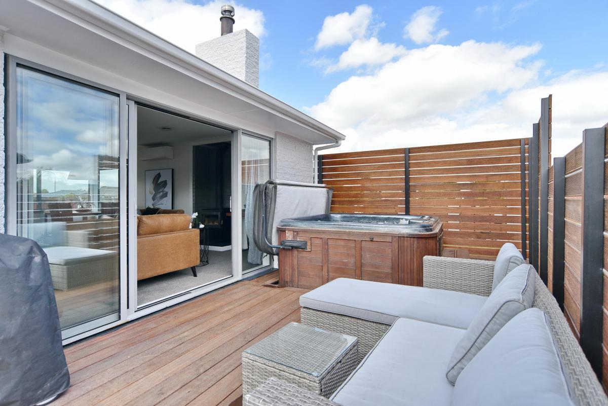 North-west facing to capture all-day sun, with large sliding doors opening to a sunny decking area and spa — perfect for relaxing or entertaining.