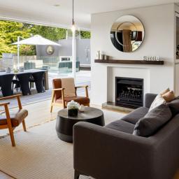 The middle level forms the social heart of the home, where the open-plan kitchen, dining and living areas create a beautifully connected central hub. Filled with natural light and oriented to capture the sun throughout the day, large slider doors open to an expansive deck overlooking the lagoon-inspired outdoor setting, complete with swimming pool, spa and outdoor fireplace, an entertainer’s dream with sweeping river views. This level also includes a separate bathroom and toilet for everyday convenience.