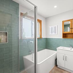 Comfort is covered year-round with HRV ventilation, a heat pump, and a wood burner, while mostly double-glazed windows help keep the home warm and efficient.