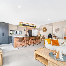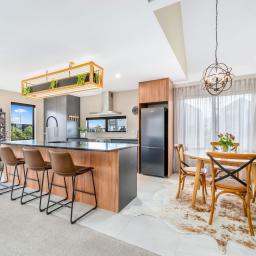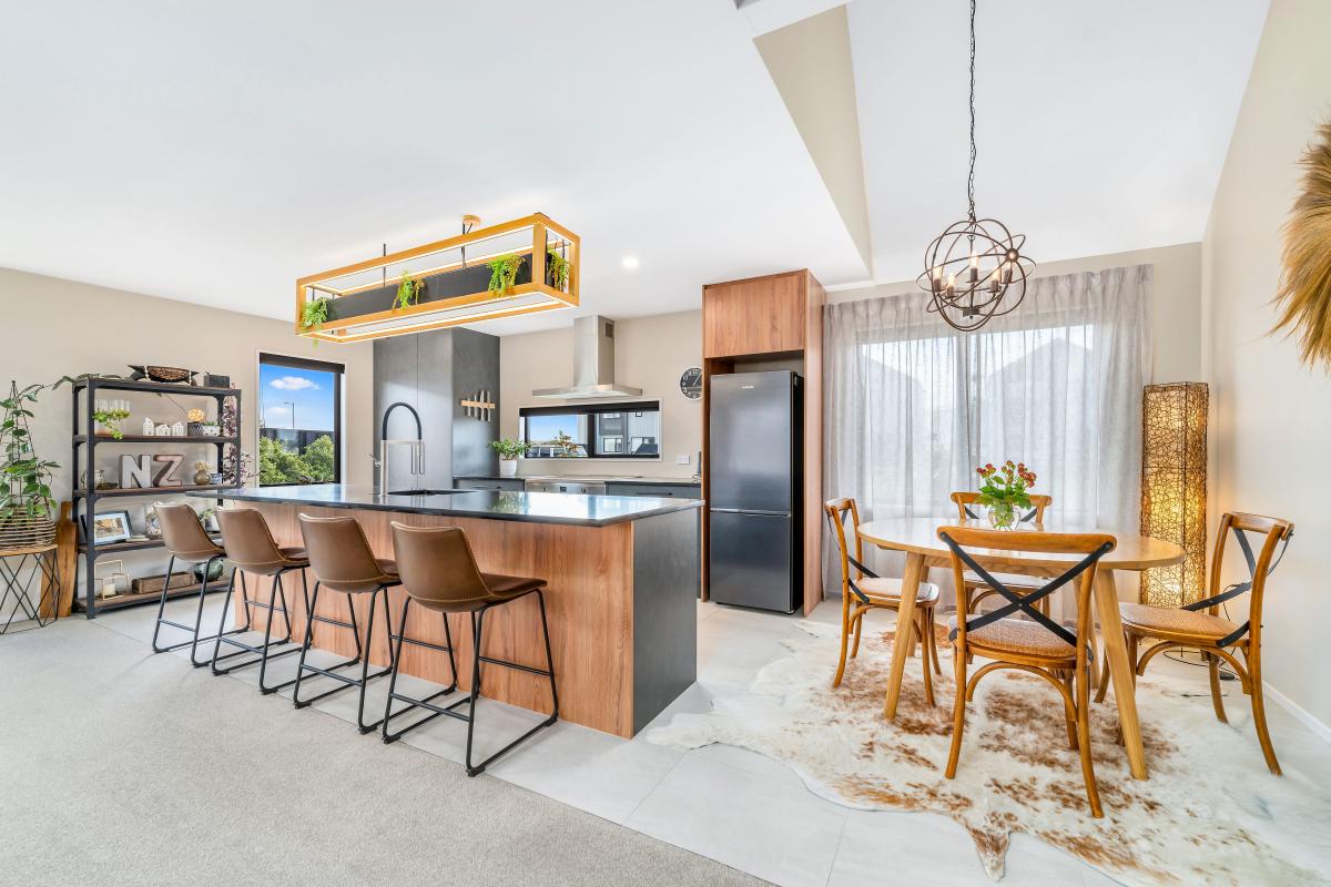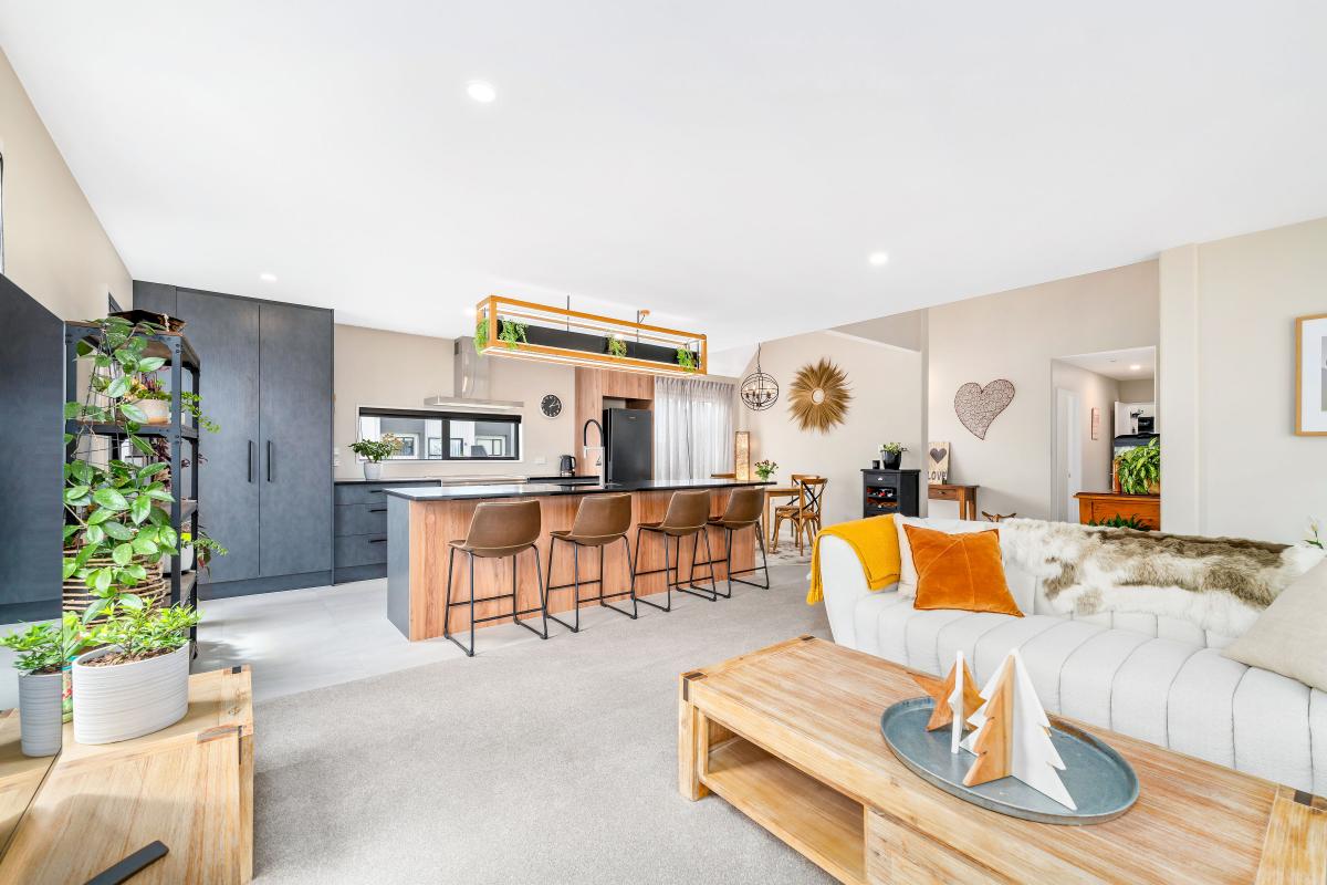 Inside, the home opens into a light-filled open-plan living and dining area with an easy, natural flow through to the kitchen. The modern kitchen is well-appointed and practical, working comfortably for everyday living and relaxed entertaining.
