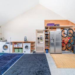 The garage adds an unexpected element, with a cathedral ceiling creating extra volume and flexibility. Currently featuring a climbing wall, it’s a space that can easily evolve to suit your lifestyle.
