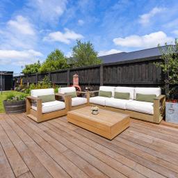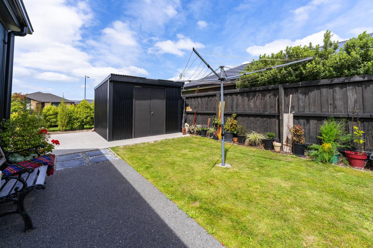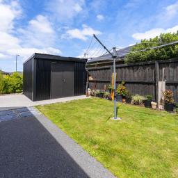 Outside, established gardens surround the home, with Kwila decking providing a great spot to relax. Discreet double gates open to a concrete patio offering valuable extra parking, while a large garden shed completes the outdoor setup, keeping storage practical and out of sight.
