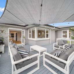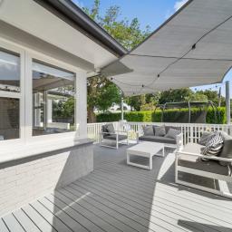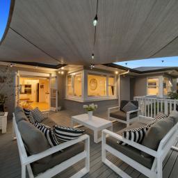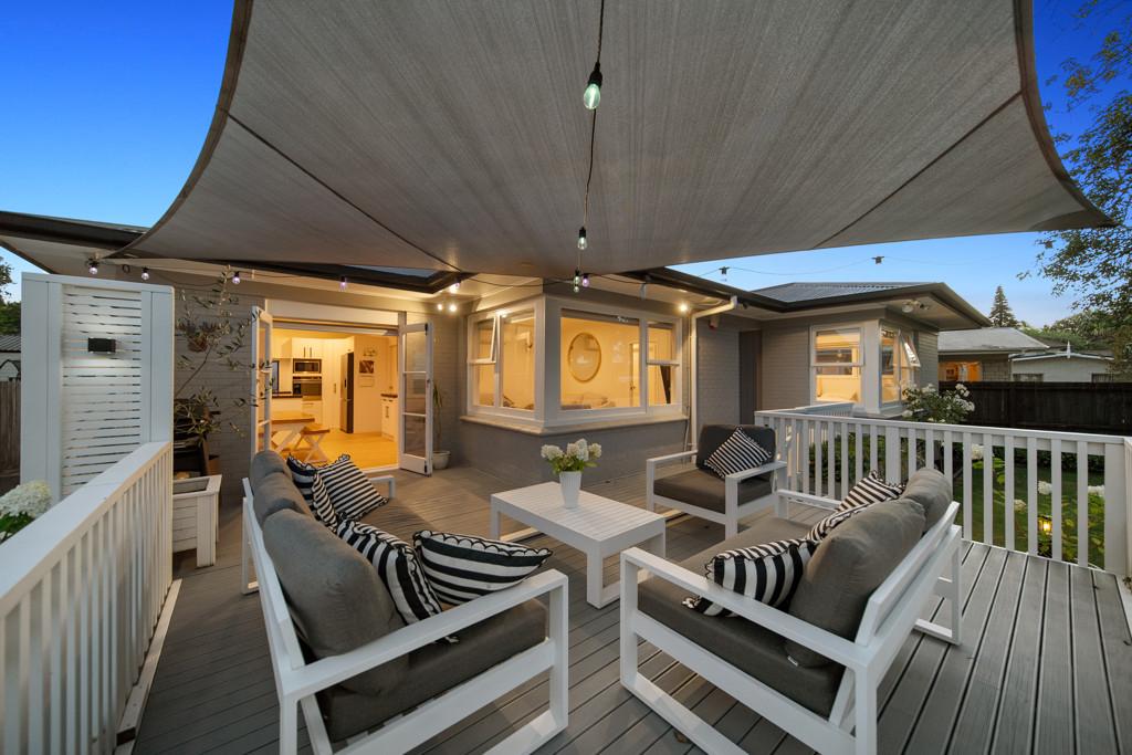 Step outside to an expansive deck complete with a shade sail and solar powered festoon lighting, perfect for long summer evenings, casual get togethers, or quiet moments to unwind.