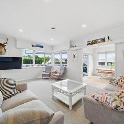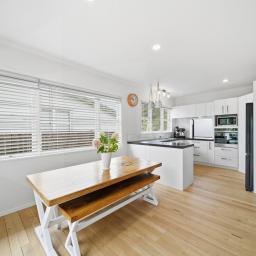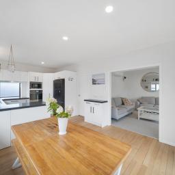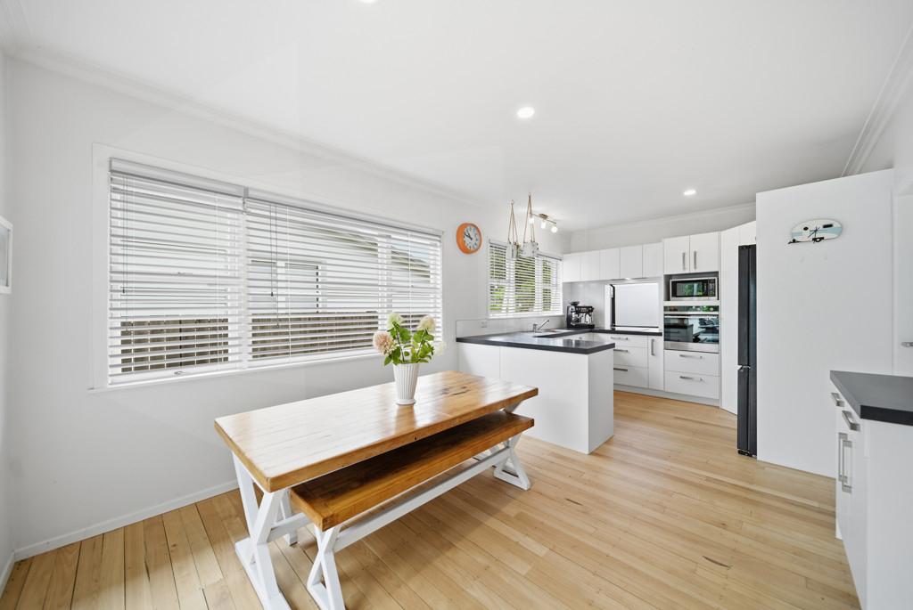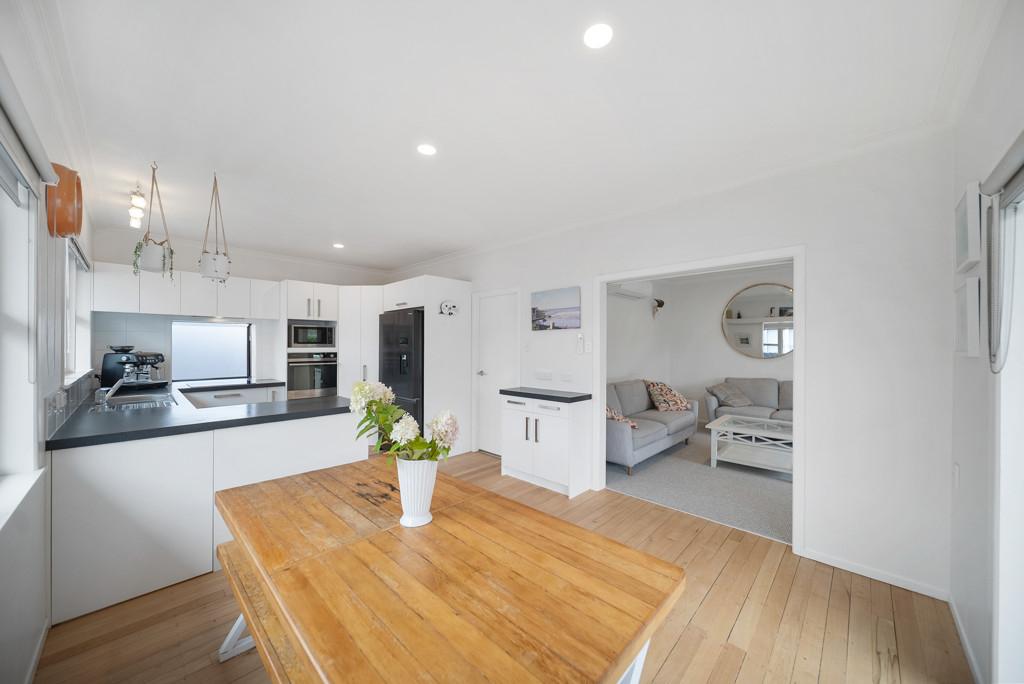 The kitchen and dining area feature stunning solid Tawa timber flooring, adding warmth and character while creating a natural hub for daily living and entertaining. Freshly painted interiors and new carpet throughout enhance the light, bright feel of the home, making it completely move in ready.