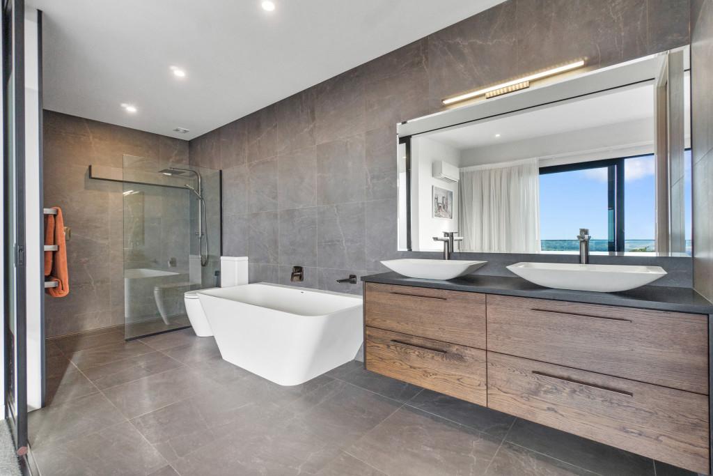 The bedroom accommodation is arranged to provide privacy and separation. The master suite, complete with open-plan ensuite, walk-in wardrobe and elevated harbour views, provides a calm retreat. Two additional bedrooms are well-positioned upstairs to accommodate family or guests.