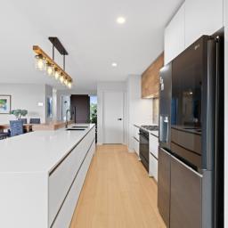 From the moment you step through the front door, the caliber of craftsmanship is undeniable. The home's social hub is a designer kitchen, featuring a premium gas cooktop, sleek stone benchtops, and a spacious walk-in scullery for seamless entertaining. Everyday living is split into two separate locations. You can choose between the cozy ambiance of the living area with its stunning gas fire or the generous open-plan family wing. Both of these living spaces flow effortlessly onto the expansive rear decking, creating a perfect indoor-outdoor harmony.