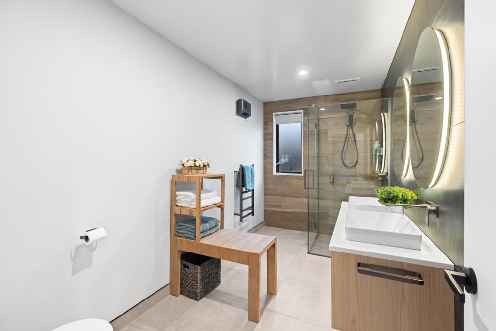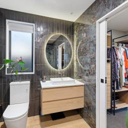 Designed with flexibility and luxury in mind, the accommodation is split to cater to families and guests alike. The master retreat offers direct access to the manicured grounds, a walk-through robe, and an ensuite featuring under-tile heating and a floor-to-ceiling tiled shower. A second bedroom serves as a perfect guest wing, boasting its own private ensuite that mirrors the high-end tiled finish of the master. The remaining two bedrooms are well-sized and supported by a stunning family bathroom complete with dual vanities.