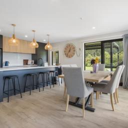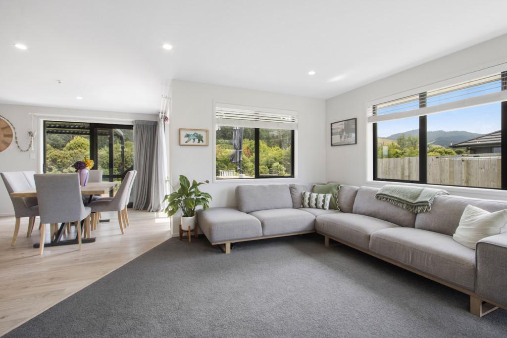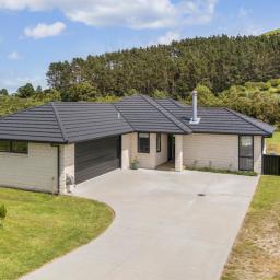 The heart of the home is the open-plan kitchen, dining, and living area, flowing effortlessly to an outdoor entertaining space that captures sweeping views of the Waihi Hills. A fireplace with heat transfer system keeps the home cosy in winter, while the internal access double garage and extra off-street parking mean there's room for your boat, camper, or guests.
