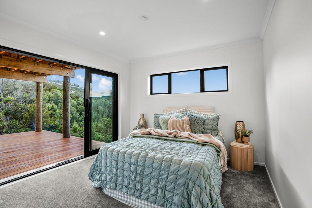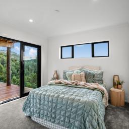 The master retreat is a private sanctuary, complete with a walk-through wardrobe, elegant ensuite, and direct access to a generous deck shared with a second bedroom - the perfect spot to unwind among native bush and birdsong.