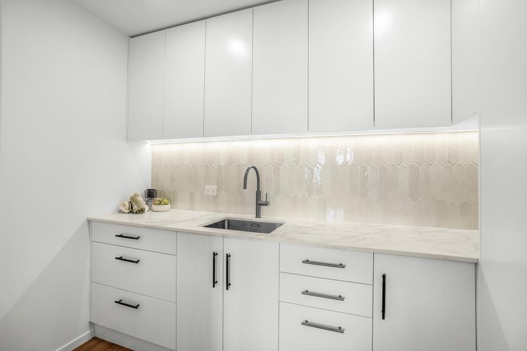 Upstairs, the light-filled open-plan kitchen, dining, and living area forms the heart of the home, capturing expansive views across the Hutt River and Valley. The designer kitchen features stone benchtops, a scullery, and premium appliances, making entertaining effortless. A separate lounge provides an additional retreat and flows seamlessly to the deck for relaxed indoor-outdoor living.