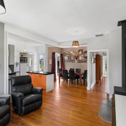 Inside, the layout is practical and inviting. The open plan kitchen, dining and living area forms the heart of the home, providing a warm and sociable space for everyday life. Timber floors, good natural light and a comfortable flow create an easy-going atmosphere that instantly feels like home.