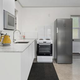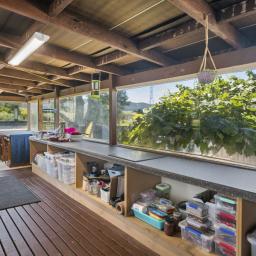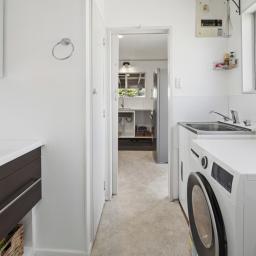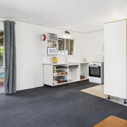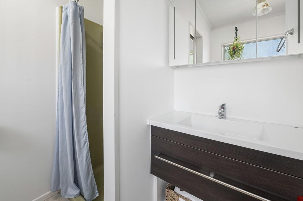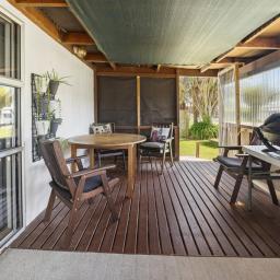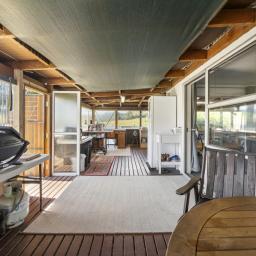 Modern kitchen and bathroom. This property is comlimented with a generous covered deck area for extra living space.