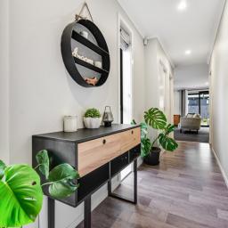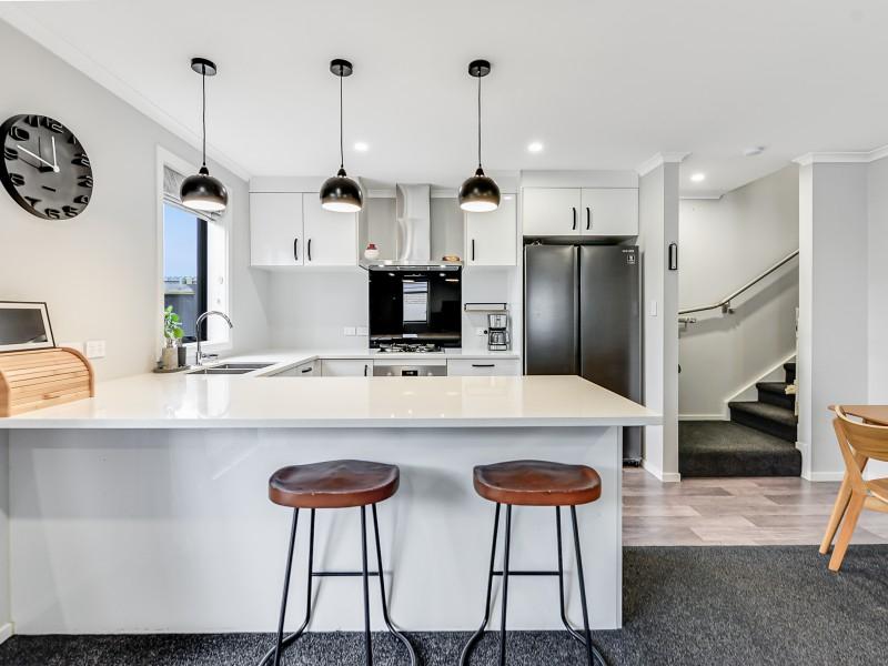 Spread over two chic levels, the layout thoughtfully separates active and quiet zones. Downstairs presents open plan living and the perks of a covered entertainment deck, a powder room, and a garage/laundry combo.