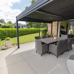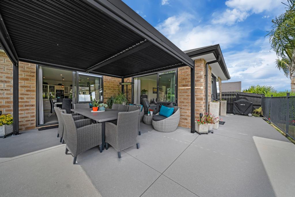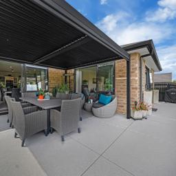 Pergola covers the patio from the family/dining/lounge area. This home has everything covered.