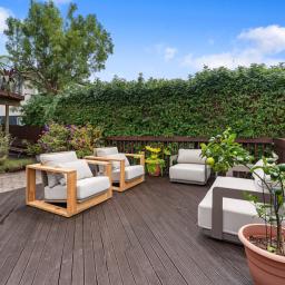 The fully fenced rear section is smartly terraced making the entire space easy to get around and usable. Attractively landscaped with low maintenance in mind makes keeping it that way a breeze. The pool terrace is as inviting as it is refreshing with its own covered storage area.