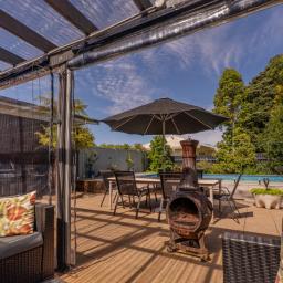 - your personal modern concrete heated swimming pool; quality decking; glass balustrading;and even accent lighting: how would you enjoy it?