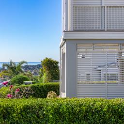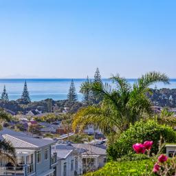From your elevated position, take in sweeping views across manicured gardens, a tranquil native bush reserve and out to the sparkling sea — a truly captivating outlook that elevates everyday living. The home features two generously sized bedrooms, two beautifully appointed bathrooms, and a single internal-access garage, plus additional off-street parking.