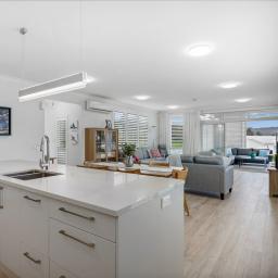 Step into refined, effortless living in this impeccably maintained, single-level (ground floor) modern duplex, set within the highly sought-after Kensington Park community in Orewa. Designed to maximise light, comfort and privacy, this elegant home offers a north-facing open-plan layout complemented by sleek contemporary finishes throughout.