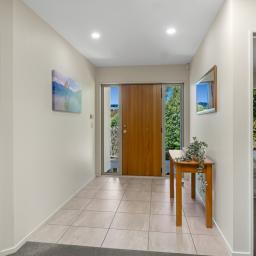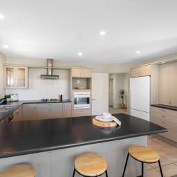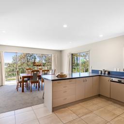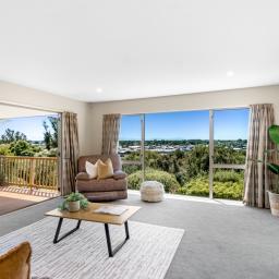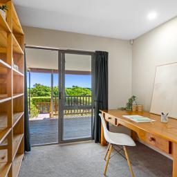 Accommodation is generous and flexible, with four bedrooms, a large study, three bathrooms, including a downstairs bedroom with its own bathroom and external access, ideal for guests, teenagers, or extended family. Comfort is assured year-round with double glazing, two heat pumps and a gas fire, while four-car garaging and ample off-street parking complete the home's practical appeal.