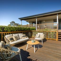 Below, a lower deck is tucked quietly among established planting. Intimate and secluded, it offers a calm retreat for morning tea or evening wine, removed enough to feel private while remaining connected to the home above.