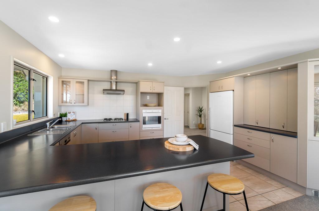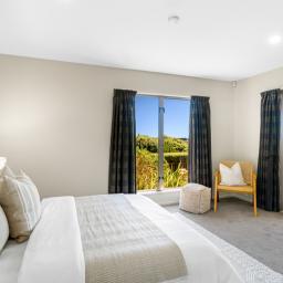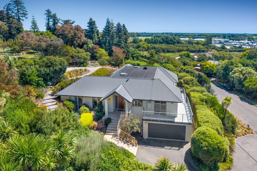 Occupying a generous 1,500m² site, the 320m² residence is elevated and carefully oriented to capture sweeping, uninterrupted views across the landscape to the Southern Alps, while remaining naturally sheltered from prevailing winds. Sun, outlook, and protection are all thoughtfully balanced.