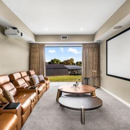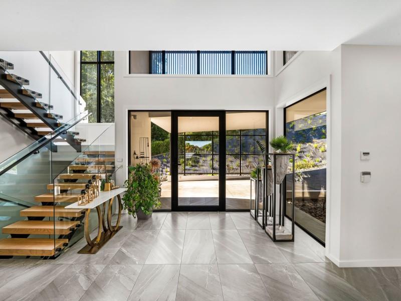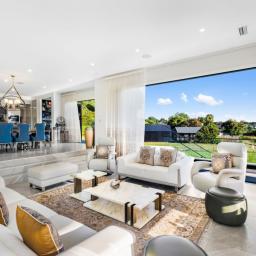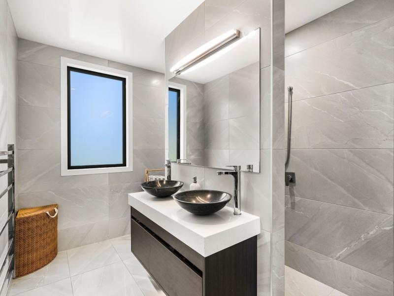 In total, the home offers five bathrooms plus a separate toilet, including two ensuites and a luxurious master suite. Underfloor heating in key areas, a laundry chute, advanced security, solar pre-wiring and a drive-through garage all contribute to everyday ease and future-ready living.