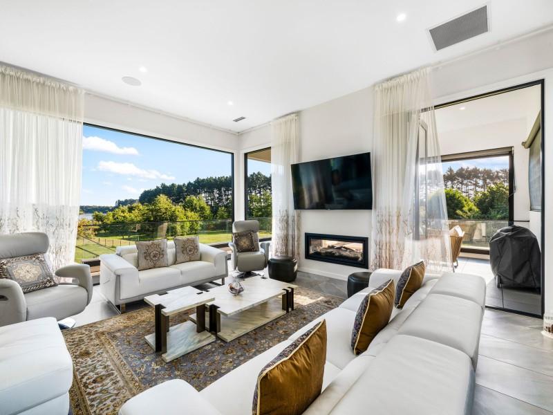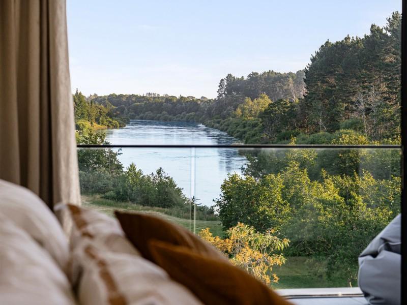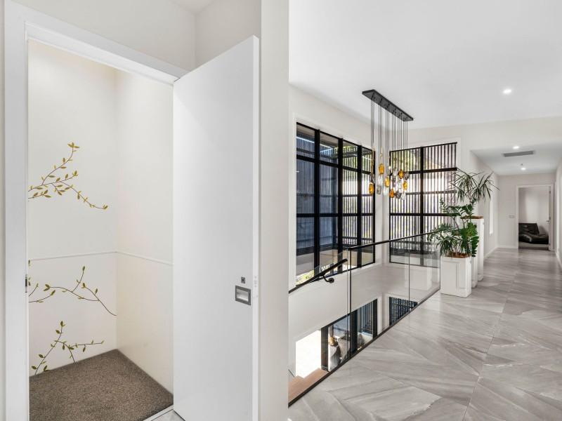 Spanning an expansive 537sqm floor plan on a 5,000sqm lifestyle block, each level has been thoughtfully oriented to maximise the panoramic river views, with generous stud heights adding to the sense of space and natural light. A lift services all three levels, ensuring easy access and future-proofed living.
