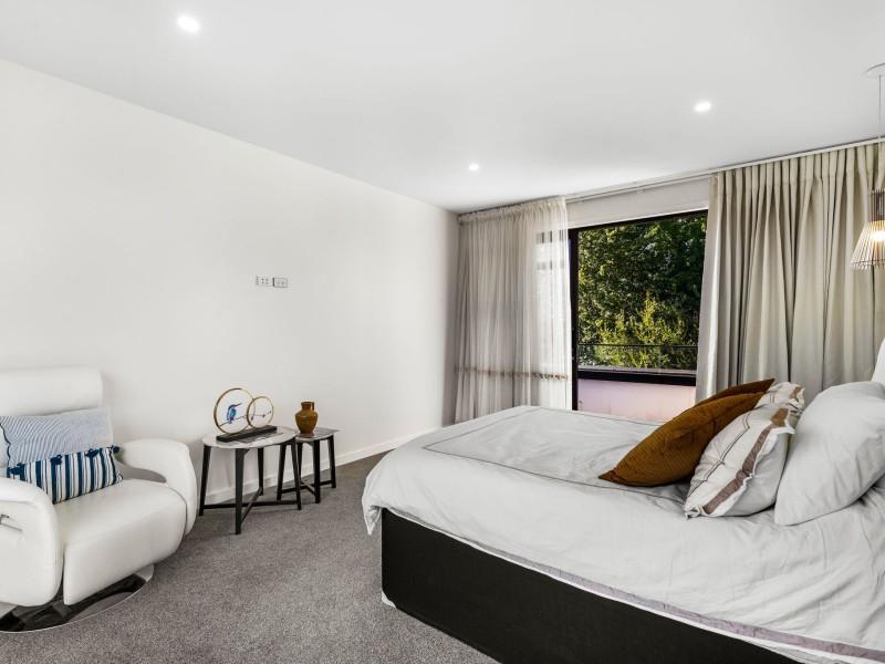 The third level is a private retreat, headlined by the master suite with balcony, generous walk-in wardrobe and ensuite. From here, the elevated position captures panoramic views of the Waikato River — a rare and special feature. Two additional bedrooms are supported by a family bathroom, alongside a second living area and office space.