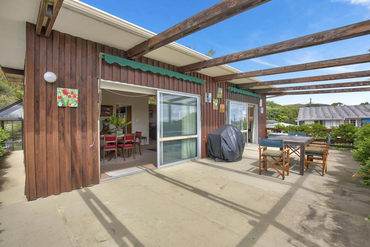 The garden is a true delight, featuring an impressive collection of fruit trees — fig, walnut, mandarin, lemon, grapefruit, orange, plum — plus a thriving grapevine. Off the living area, the balcony is graced by one of the most established wisteria vines we’ve ever seen. And what a balcony it is, with sweeping views of our beloved Kāpiti Island and, on a clear day, a panorama stretching from D'Urville Island all the way to Mount Taranaki.