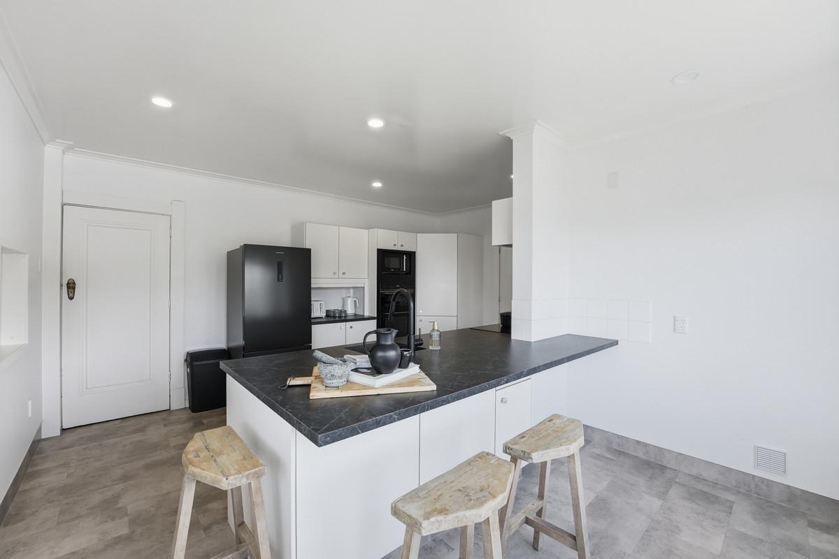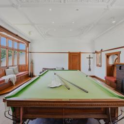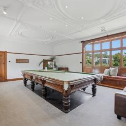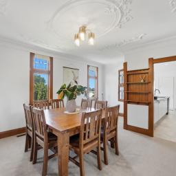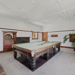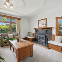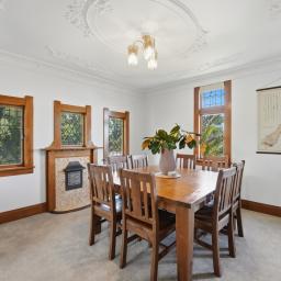 The kitchen has been tastefully modernised with crisp white cabinetry, black appliances and contemporary tapware, striking a perfect balance between style and functionality without detracting from the home's heritage feel. Living spaces are generous and versatile, with the central dining room connecting seamlessly to both the lounge and kitchen. Close the doors for intimate gatherings or open them wide to create effortless family connection. The lounge is warmed by a character fireplace flanked by built-in seating, while a second living room - currently enjoyed as a billiards room - offers a relaxed retreat complete with a window seat and fireplace, perfect for evenings in.