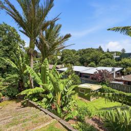 Accommodation is equally impressive, with three genuinely spacious bedrooms, including a master with walk-in wardrobe. A large family bathroom services the home, complemented by a separate guest WC for added convenience. Outdoors, the fully fenced, tiered section feels like a private tropical haven, complete with established palms, immaculate grounds and multiple garden sheds. A single internal-access garage completes the picture.