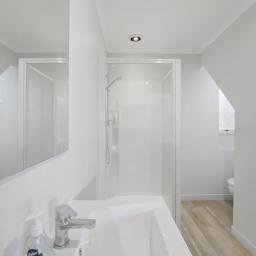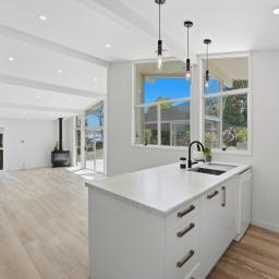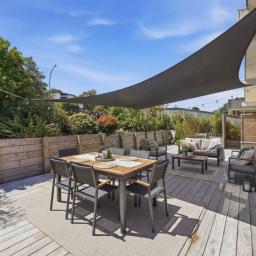 Upstairs, the light and airy open-plan living and dining zone connects seamlessly to a beautifully landscaped, supersized deck — perfect for summer entertaining or relaxed evenings outdoors. The modern kitchen, neutral décor and cosy gas fireplace create a welcoming hub, whether you're hosting or enjoying a quiet night in.