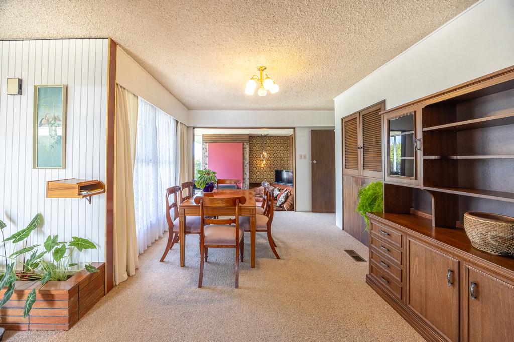 Homes of this distinction are seldom found with views that are hard to beat in town, river, rural views and over to Tokatoka. The separate light filled lounge flows to the dining room and a conversation pit. The original kitchen is still so functional, very well designed. There are three good sized bedrooms with wardrobes and a family bathroom with a separate toilet and great sized laundry. The generous carport has internal access and features storage cupboards and an office at the rear. There is also a utilities room tucked away for you to create your man cave/workshop or artists studio.