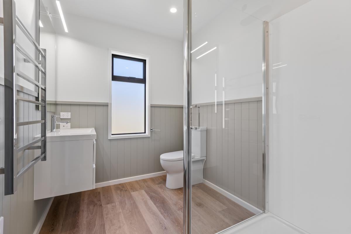 The kitchen balances style and functionality, featuring generous bench space, soft-close cabinetry, and excellent storage. Year-round comfort is assured with double glazing, a heat pump, and an energy-efficient Eco Spring heat pump electric hot water system.