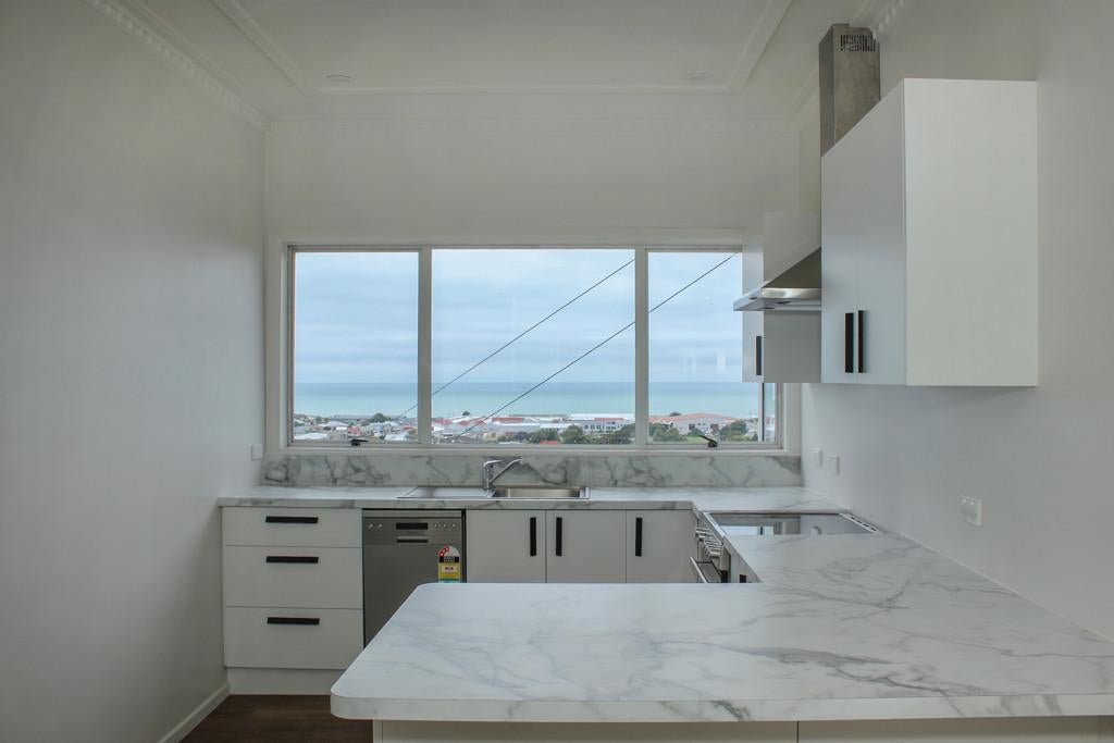 Two generous living areas create ample space for both relaxing and entertaining, enhanced by detailed ceilings that add character and charm. The cosy ocean-facing living is heated comfortably with a log burner.