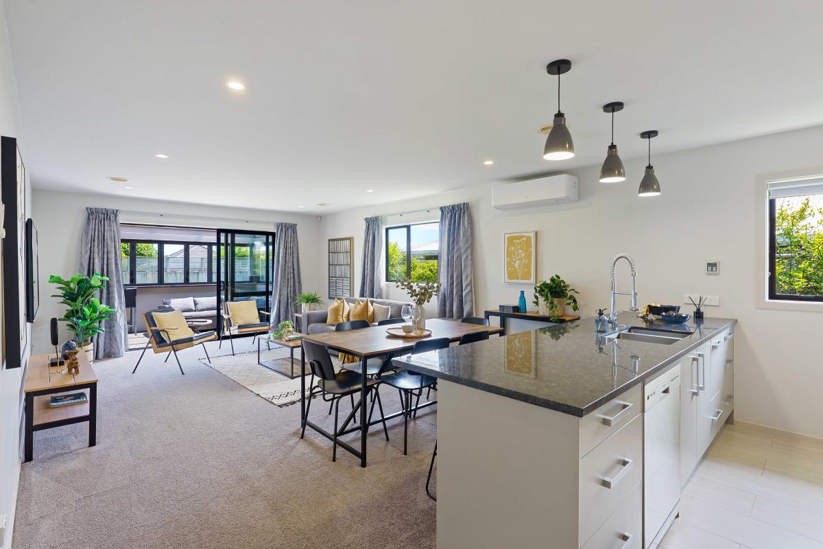 The open-plan kitchen, dining, and living area flows seamlessly to a private patio—ideal for relaxed outdoor living. With sleek finishes, gas cooking, and great natural light, the home is designed for easy everyday living and effortless entertaining.