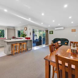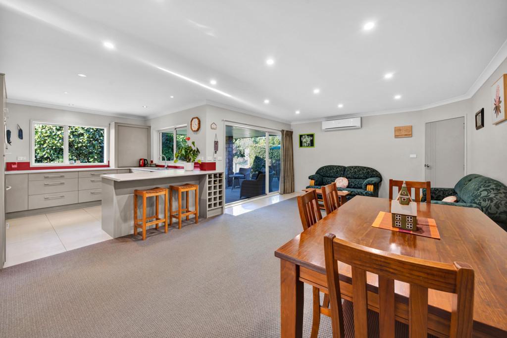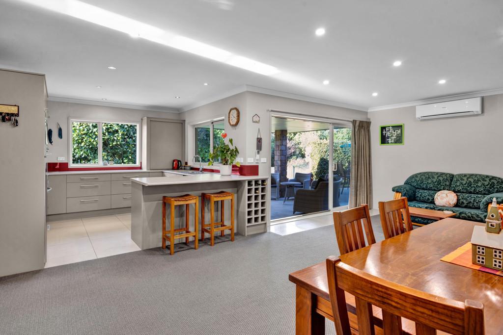 The heart of the home opens seamlessly to an outdoor undercover patio, creating the perfect spot for year-round entertaining or relaxed evenings overlooking the private yard. Secure double garaging with internal access adds everyday convenience, while the fully fenced section provides peace of mind for children and pets.