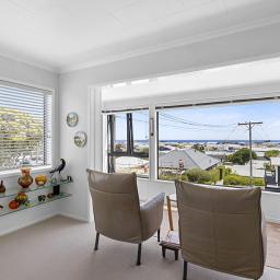 Solidly constructed in brick and block, this smart two-level home is double glazed and beautifully maintained, offering comfort, space, and peace of mind. The upper level offers open-plan lounge, kitchen and dining plus sunroom, capturing sweeping city-to-sea views. From here soak up stunning sunsets while watching the ships sail to port.