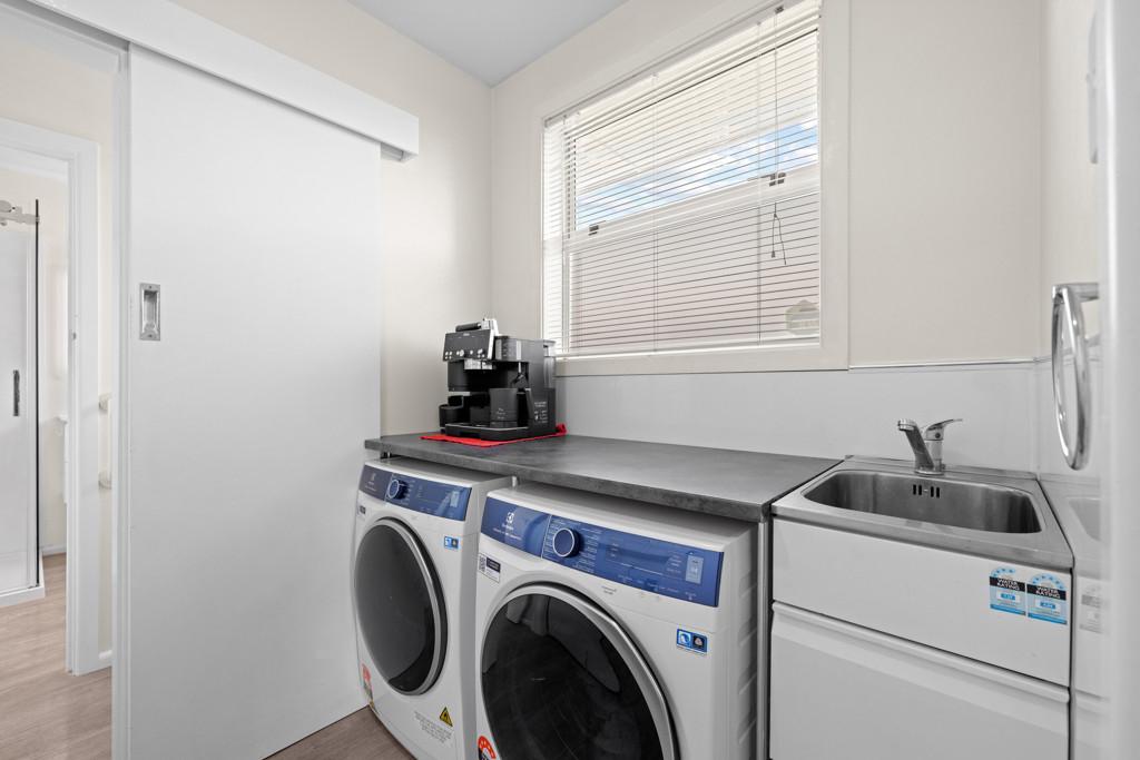 Comfort is sorted with two heat pumps and an HRV system, keeping the home warm, dry and healthy through every season.