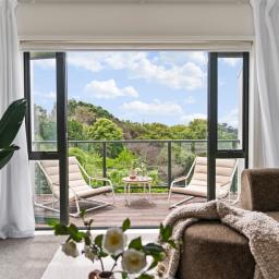 Privately positioned within a secure gated community, this sunny north-facing home offers comfort, flexibility, and an unbeatable Remuera location. Overlooking the tree-clad Newmarket Park with views stretching to Orakei Basin and Hobson Bay, the peaceful sounds of cicadas and rustling trees create a relaxing natural backdrop.
