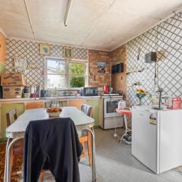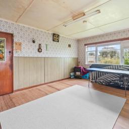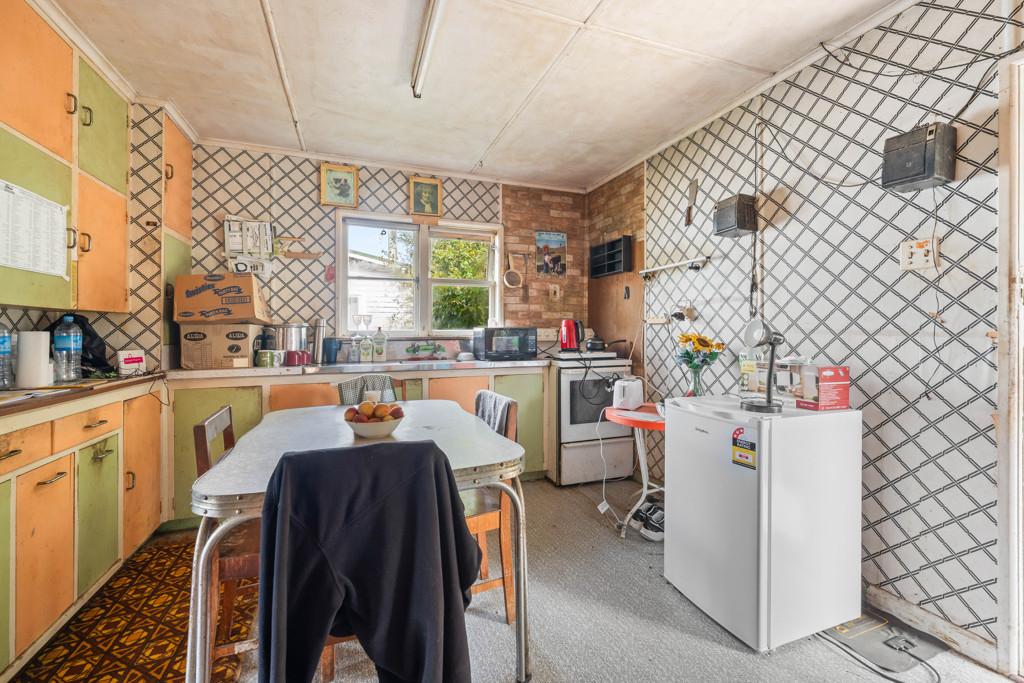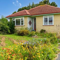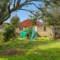 17 Campbell Terrace features a 1950s weatherboard home with solid bones, 2 bedrooms, a bathroom, a separate toilet, a kitchen, and a lounge - ready for renovation as-is, where-is. Outside, enjoy a single garage, utility sheds, bird aviaries, and multiple fruit trees.