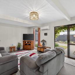 The spacious living area flows into the open-plan dining and kitchen, creating a central hub for everyday family living. A modern bathroom and renovated laundry add comfort and practicality, while the heat pump keeps the home comfortable year-round.