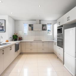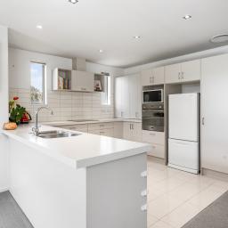 The kitchen is a standout, dressed in acrylic benchtops and beautiful tiled finishes. It's a space that feels premium, functional and genuinely enjoyable to spend time in.