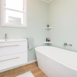 Ranchsliders from two of the four bedrooms plus the living room ranchslider opens out on to a massive North-facing deck wrapping itself round to the primary bedroom. Modern bathroom features bath, shower cubicle and vanity with separate toilet next door.