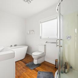 The modernised interior is bright and welcoming, with two bathrooms to comfortably cater to busy households and two heat pumps for year-round comfort.